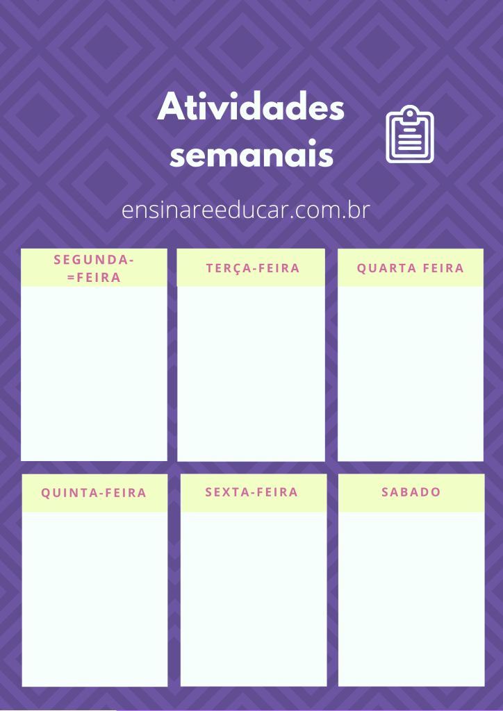 CLIQUE AQUI E FAÇA O DOWNLOAD https://ensinareducareaprendercomapedagogia.school.blog/wp-content/uploads/2021/05/registro-de-tarefas-semanal.pdf