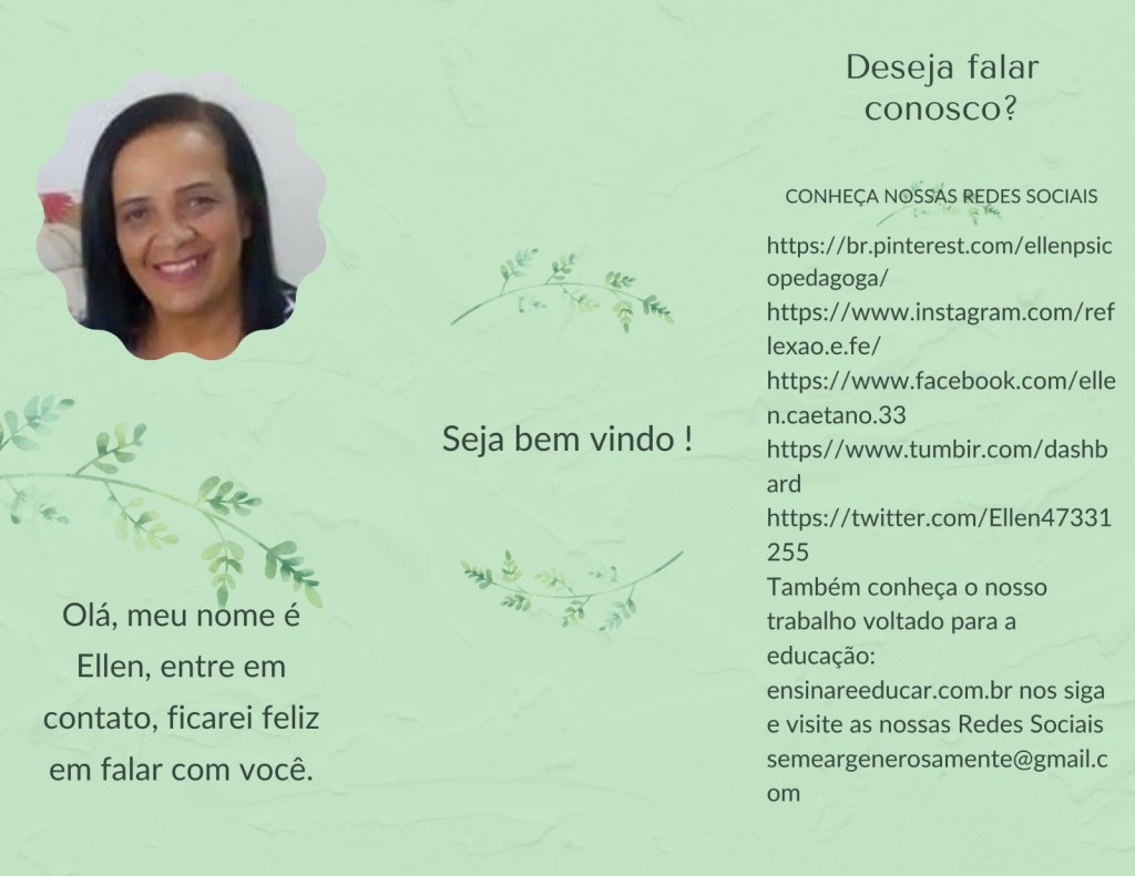 Olá, meu nome é Ellen sou professora, moro no Distrito Federal, e neste momento me dedico para escrever conteúdo voltado para a educação, tendo como objetivo ampliar o conhecimento tal como também compartilhar e dividir experiências. Convido todos vocês a participar desta aventura.