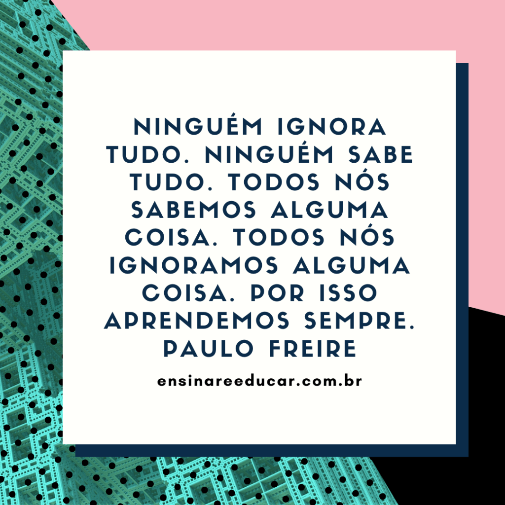 O educador, acreditava que educar estava além de passar conteúdos, para ele educar é se relacionar, é compartilhar, valorizando o conhecimento de cada um independente de sua classe social, regionalismo, religião e formação. Todos temos como contribuir para a realização desse processo.