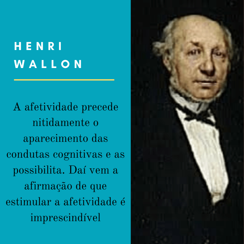 Henri Wallon nascido da França, em 1879, Wallon defende que o desenvolvimento humano está ligado ao meio em que o indivíduo está imerso nos aspectos cognitivos, afetivo e motor.